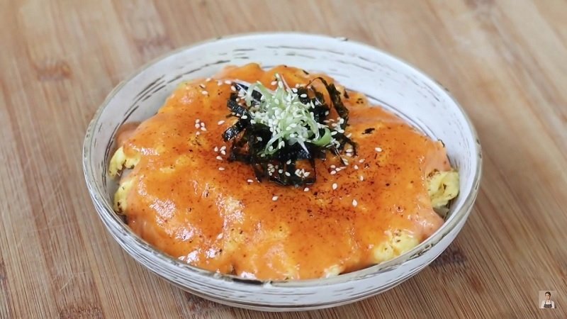 - Sajikan telur diatas nasi dengan siraman saus mentai.