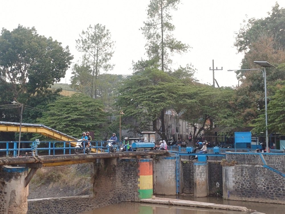 Di tepi sungai yang mengalir di bawahnya, terdapat sekitar enam warung yang sering dijadikan tempat nongkrong bagi masyarakat.