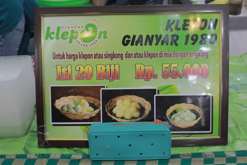 Untuk harga, Klepon Gianyar Bali dibanderol Rp55.000 per boks dengan isi 20 biji.