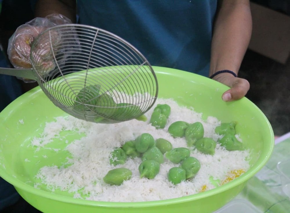 “Kalau sudah ngambang belum tentu langsung matang. Jadi harus dipastikan benar-benar matang, lalu direndam air dingin supaya tidak lengket dan tidak pecah, baru ditaburi kelapa,” terang Selvi.