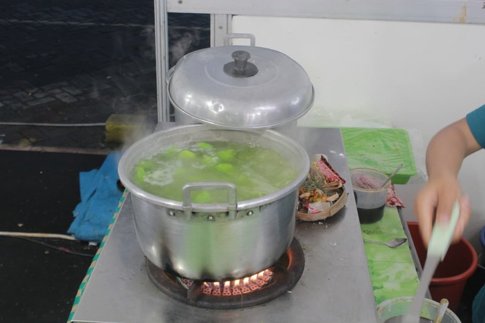Proses pembuatannya pun cukup khas, di mana adonan dipulung satu per satu untuk memastikan gula cair dapat terisi dengan sempurna sebelum direbus hingga matang.