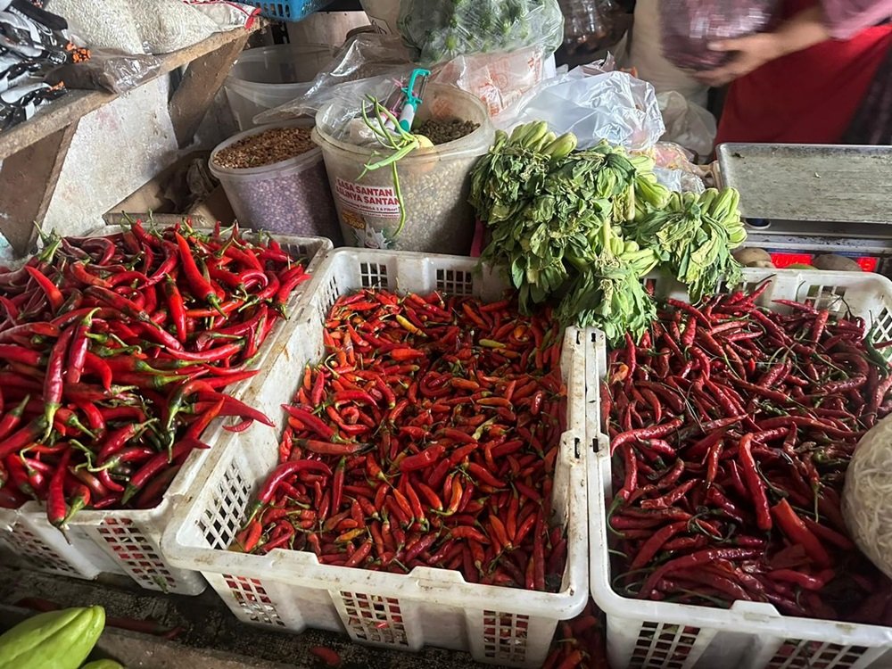 Kenaikan juga terjadi pada cabai keriting yang kini dijual Rp65 ribu per kilogram. Cabai rawit berada di kisaran Rp24 ribu, sedangkan tomat naik menjadi Rp12 ribu per kilogram.