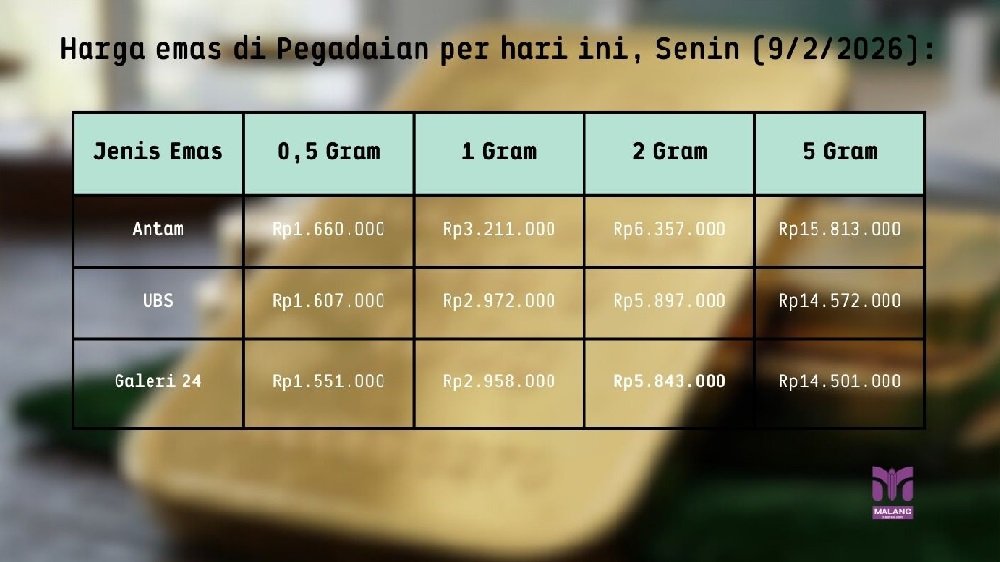 Malanginspirasi.com – Harga emas batangan di gerai PT Pegadaian (Persero) menunjukkan tren menguat di awal pekan kedua Februari 2026.