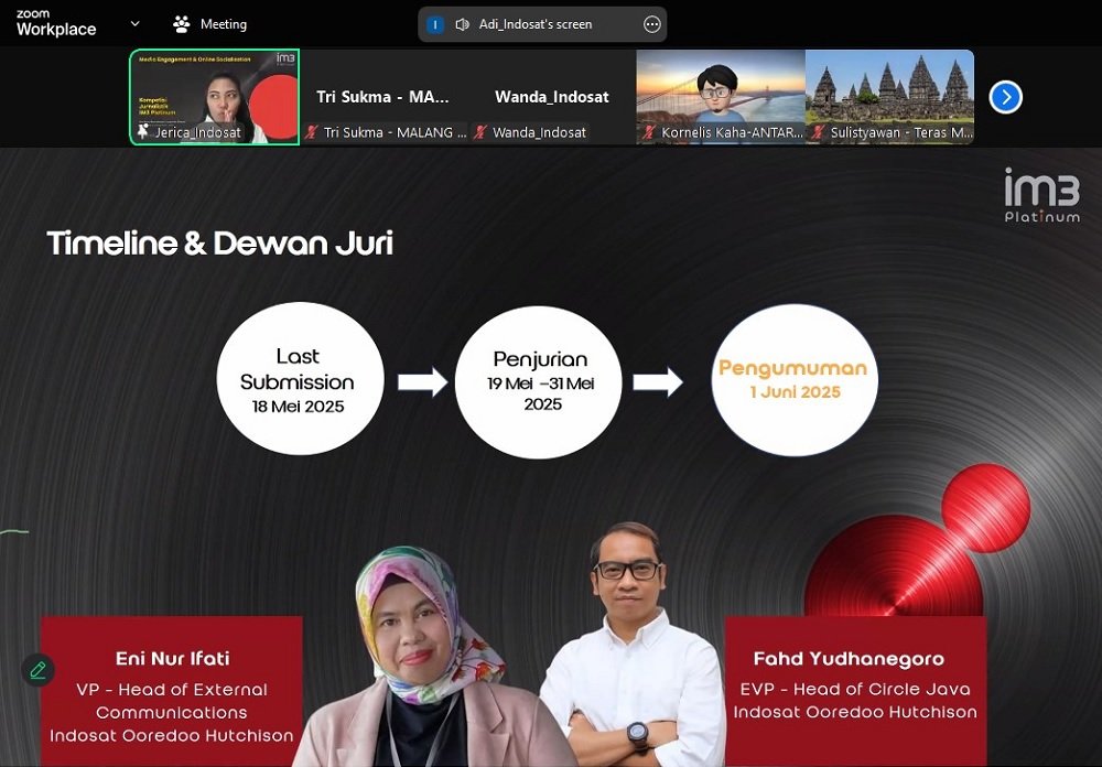 “Kami sampaikan apresiasi tinggi untuk para teman-teman media yang selama ini telah memberikan dukungan kepada Indosat Ooredoo Hutchinson dimana kompetisi jurnalistik ini mengambil tema IM3 Platinum,” katanya saat membuka meeting melalui Zoom ini.