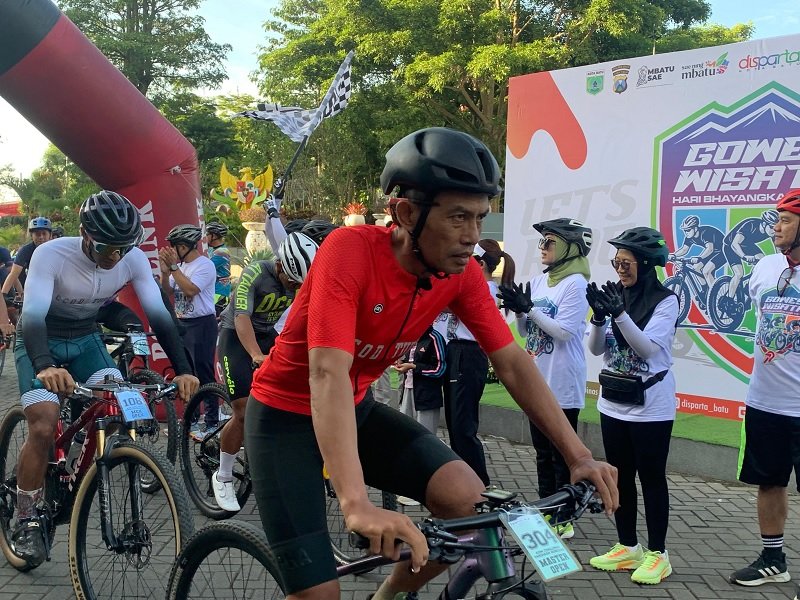 “Gelaran tahunan Gowes Wisata tersebut kami selenggarakan dalam rangka memperingati HUT ke-79 Bhayangkara. Selain itu, bertujuan untuk mengenalkan lebih luas beragam daya tarik desa-desa wisata di Kota Batu melalui event sportourism,” ujar Onny.