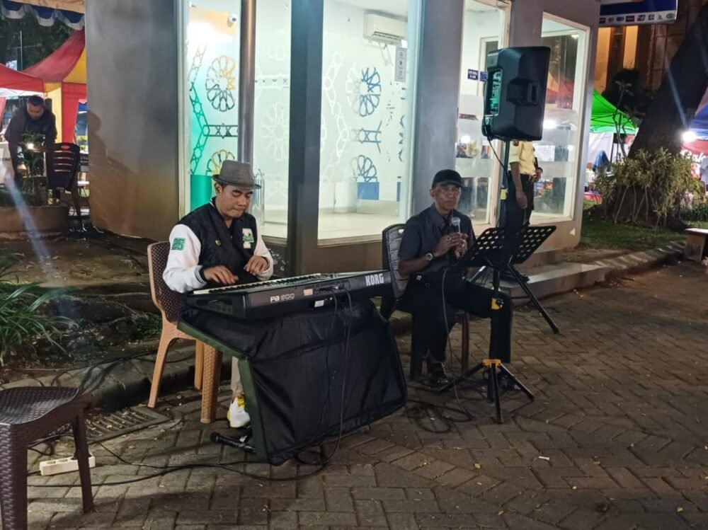 Suasana malam semakin syahdu ketika live musik mulai menghiasi area bazar.