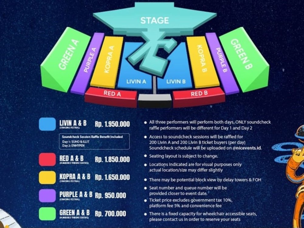 Jadwal soundcheck pun dibagi menjadi dua sesi, yakni Suho & ILLIT pada hari pertama dan Enhypen pada hari kedua.