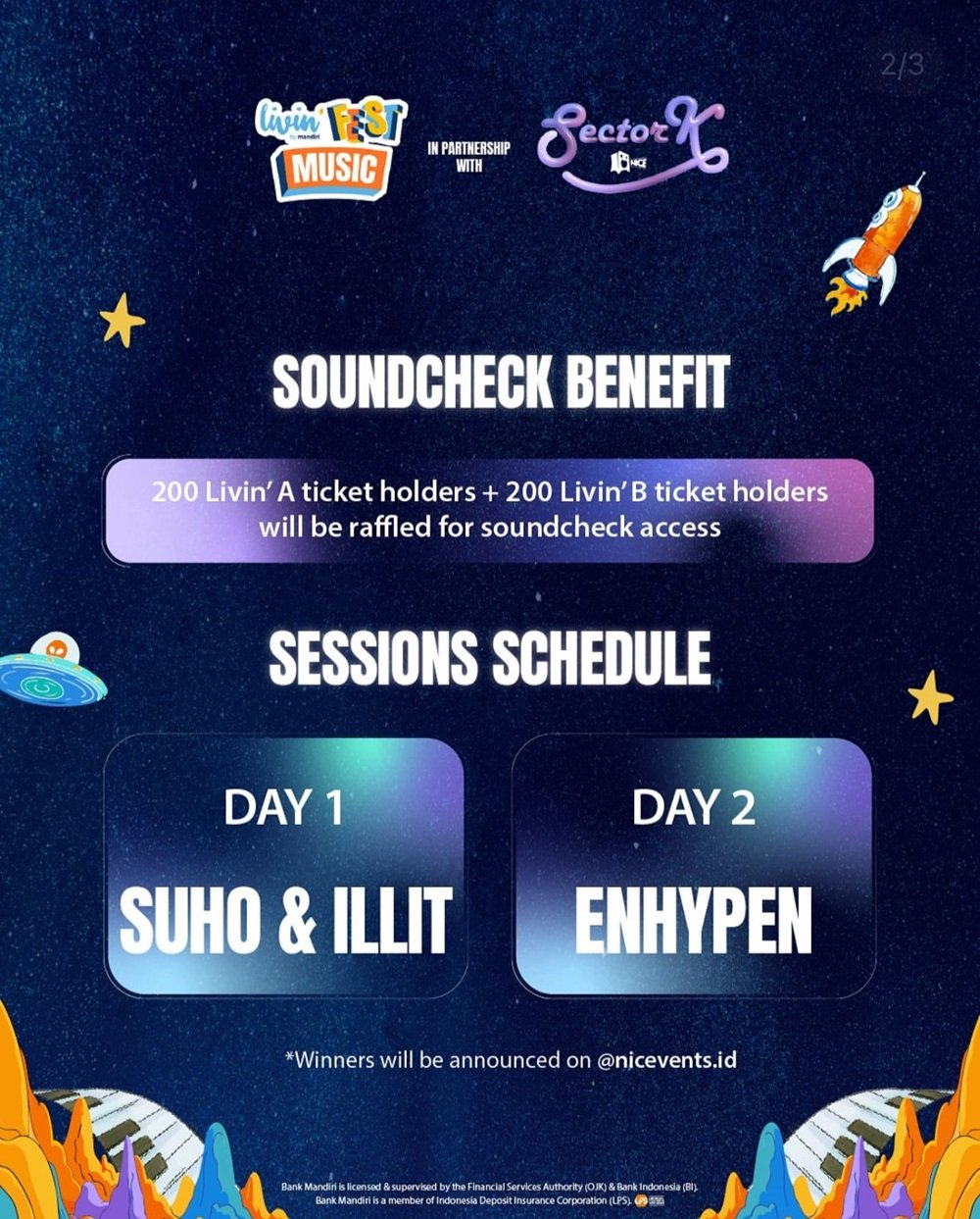 📌 Untuk informasi lebih lanjut dan pengumuman resmi terkait acara, kunjungi Instagram @bankmandiri & @nicevents.id.