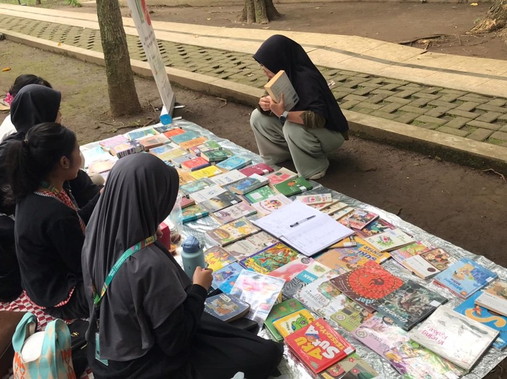 Buku-buku yang disediakan dapat dibaca langsung di lokasi maupun dipinjam selama kegiatan berlangsung.
