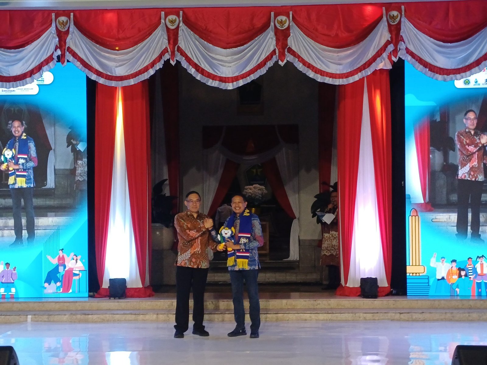 Malanginspirasi.com – Suasana tak biasa mengundang perhatian para pengendara yang melintas di depan Balai Kota Malang malam minggu ini, Sabtu (9/8/2025). Gedung heritage kebanggaan Kota Malang ini menjadi panggung meriah acara Malang Youth Festival 2025 dan Gala Dinner UM International Camp (UM I Camp).