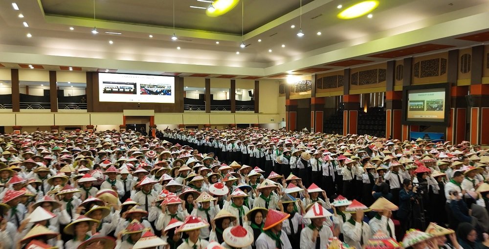 Yang membuat prosesi ini istimewa, caping yang digunakan adalah hasil kreasi seni para mahasiswa baru yang dirancang khusus untuk memperingati 80 tahun Kemerdekaan Republik Indonesia.