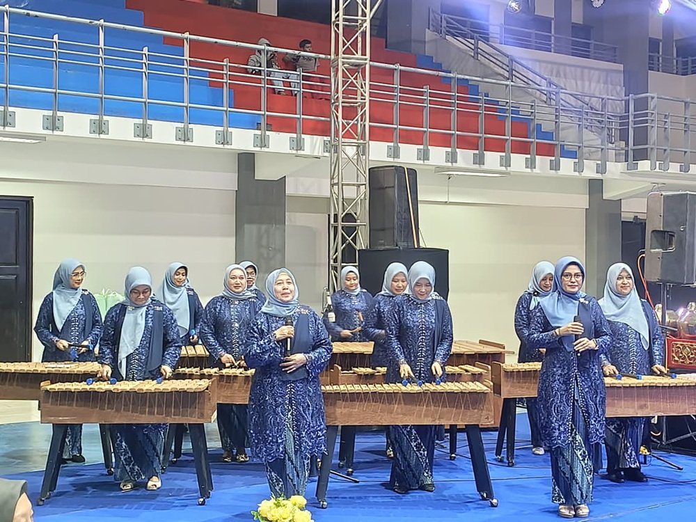 Suasana kebersamaan semakin terasa melalui penampilan musik kulintang oleh Dharma Wanita Universitas Brawijaya.