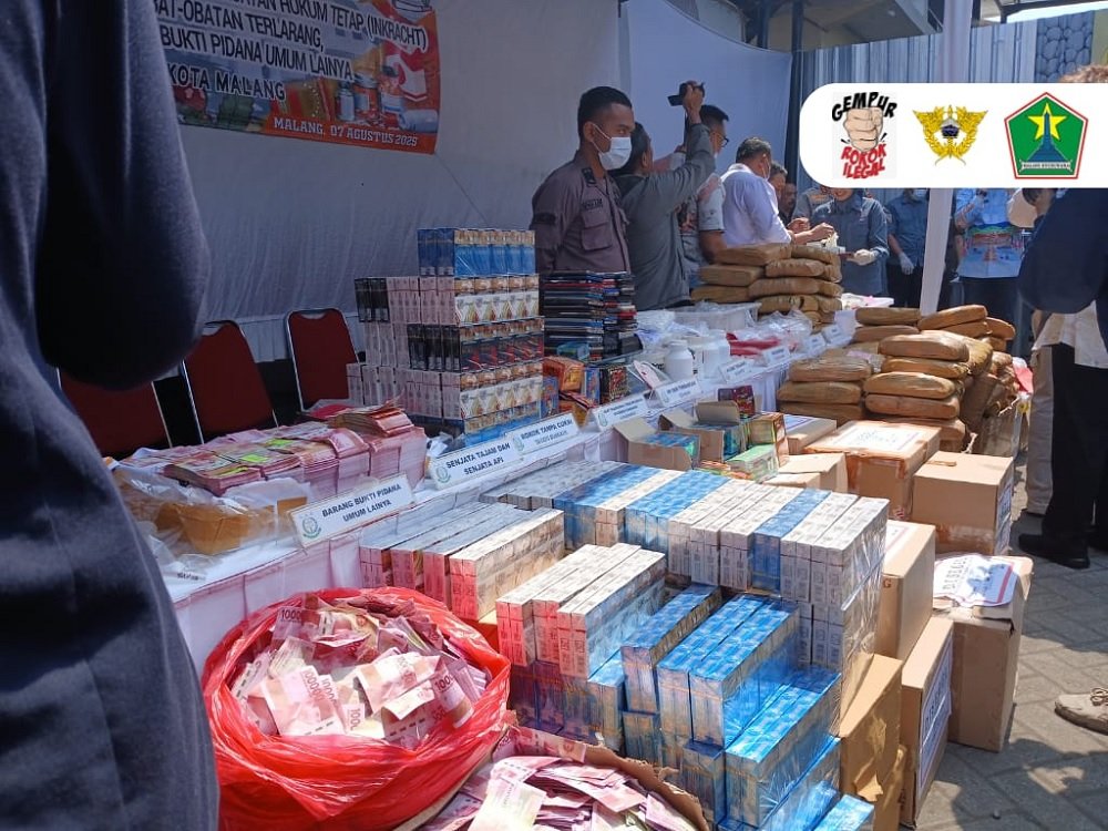Pemusnahan dipimpin langsung oleh Wali Kota Malang Wahyu Hidayat, didampingi Kapolresta Malang Kota, Dandim 0833/Kota Malang, Kepala BNN, Ketua DPRD, Kalapas, Kepala Bea Cukai, dan Kajari Kota Malang.