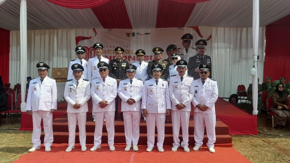 Sejumlah pejabat turut hadir dalam upacara ini, termasuk Kapolsek Jabung AKP Soemarsono, S.H., Danramil 0818-23/Jabung Kapten Inf Agung Wibowo, serta berbagai tokoh masyarakat dan para veteran.