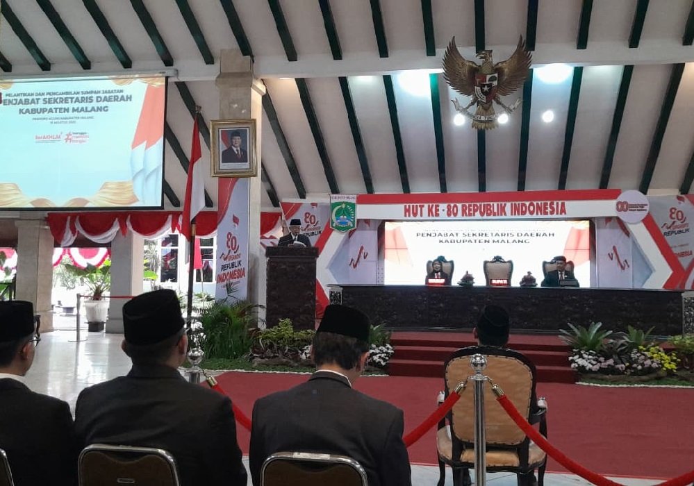 Pelantikan ini berdasarkan Surat Keputusan Bupati Malang nomor 800.1.3.3/269/35.07.405/2025 tentang pengangkatan Pj Sekda Kabupaten Malang.