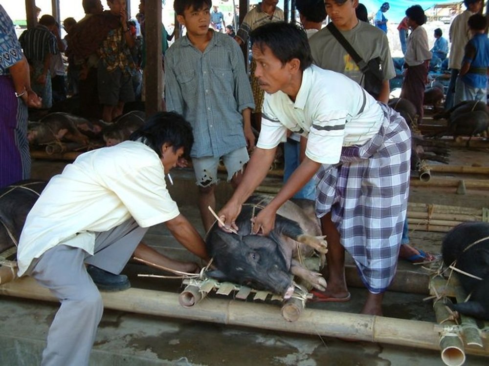 Tradisi masyarakat Batak Toba ini dilakukan dengan menyembelih hewan berkaki empat menjelang Natal (Marbinda).