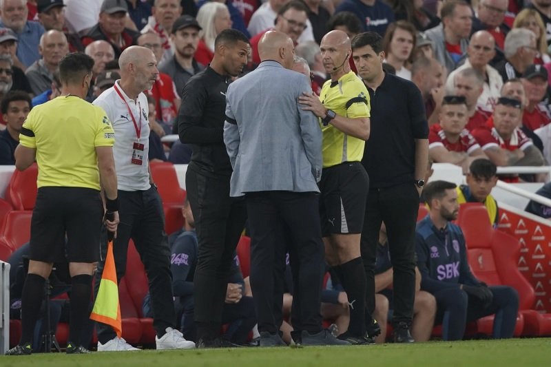 Taylor kemudian menghampiri kedua manajer, Arne Slot dari Liverpool dan Andoni Iraola dari Bournemouth, di pinggir lapangan.