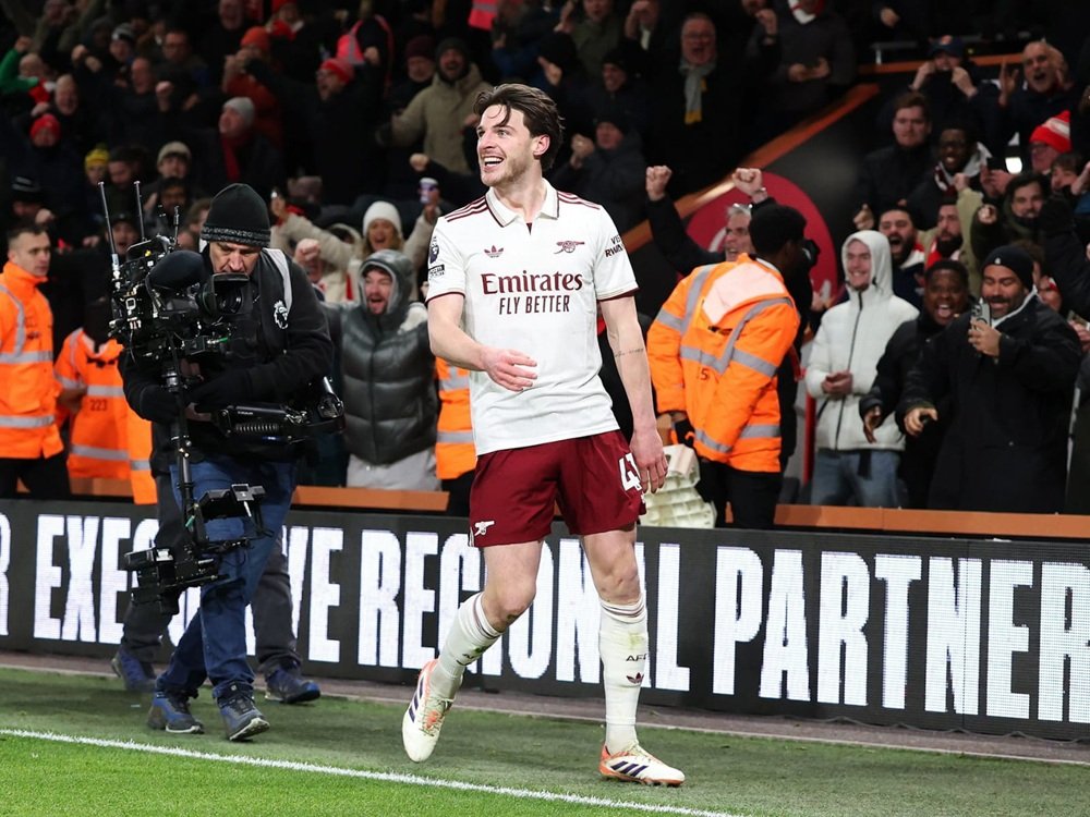Menit ke-54, Rice menerima umpan matang dari Martin Odegaard. Tembakan mendatarnya meluncur deras ke pojok bawah gawang.