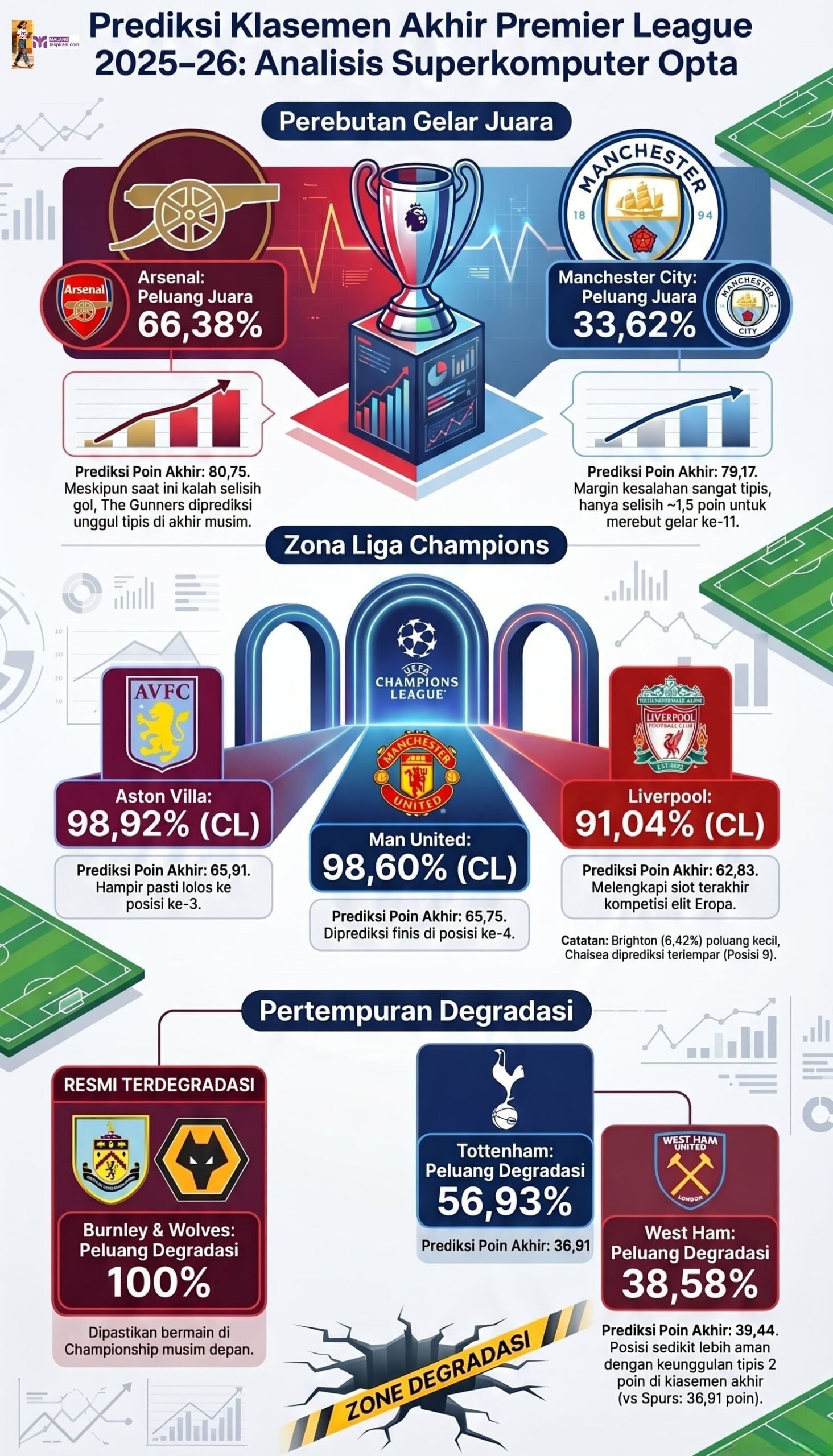 Menariknya, tim yang akan menemani Burnley dan Wolves turun kasta ke Championship menyisakan persaingan ketat antara West Ham dan Tottenham Hotspur. Kedua tim harus berjuang habis-habisan untuk menghindar dari jurang degradasi.