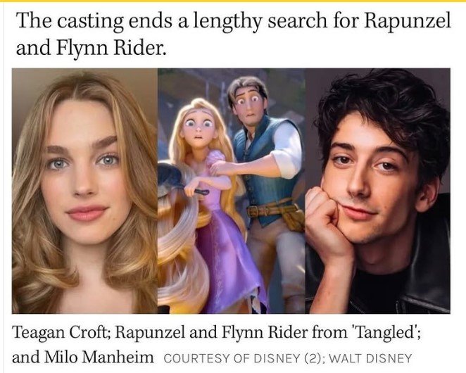 Teagan Croft akan memerankan Rapunzel, dan Milo Manheim akan memerankan Flynn Rider.