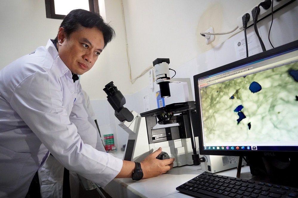 Sebagai Ketua Riset Mikroplastik di PSPK UB, Prof. Andi Kurniawan menekankan integrasi riset dengan bidang keahliannya, yaitu ekologi mikroba, khususnya biofilm.